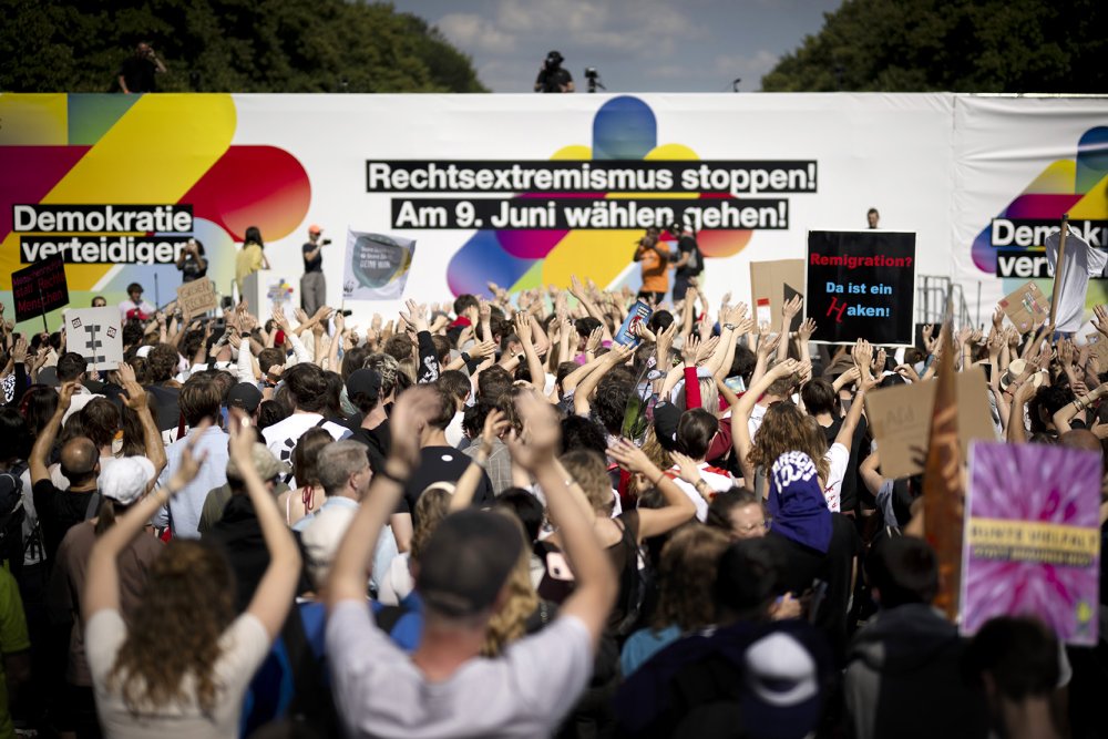 Under the slogan Defend Democracy - Together Against the Right people are gathering all over in Germany for the protection of democracy and a ban on the AfD.