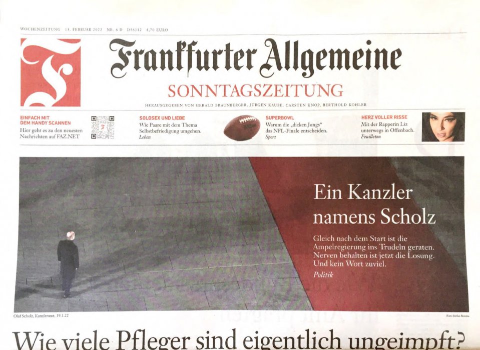2 Politikfotos in der FAZ Sonntagszeitung vom 13.02.22 und 06.02.22