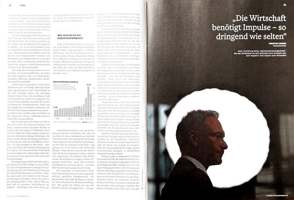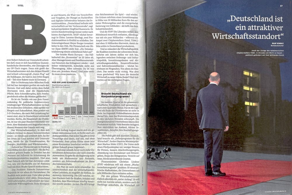 Scholz und Lindner in der Wirtschaftswoche 33/2023 via Visum.
