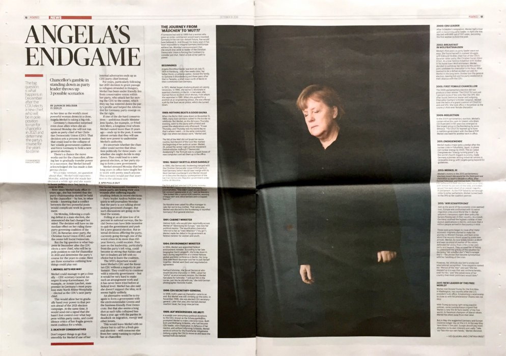 “One of the biggest government crises in the history of the Germany leaves its marks in the Berlin Republic and the Chancellor Angela Merkel. For 8 days, the Berlin political photographer Stefan Boness accompanied the chancellor for SPIEGEL on her many appointments. In this decisive week he saw a sovereign, serene and, as it seems, good-humored Chancellor.”