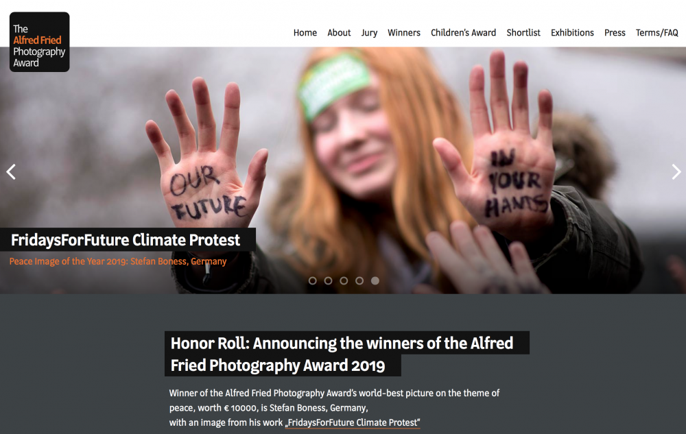 Amazing News ! Just received the Alfred Fried Photography Award 2019 worth 10.000 euros for the Peace Image of the Year for a picture from the series of the Fridays For Future Climate Protest.