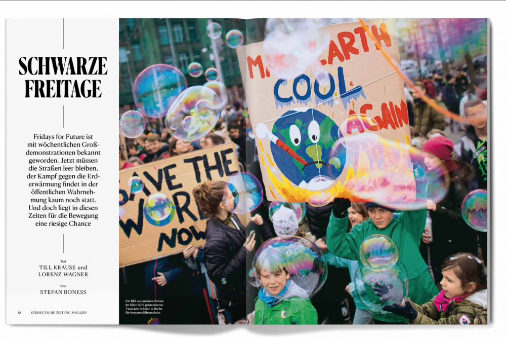 "Es gibt ein Foto, das Ende März bei einer »Fridays for Future«-Demonstration in Berlin aufgenommen wurde. Zu sehen sind junge Leute, auffallend mehr Mädchen als Jungs, die Münder sind weit geöffnet, sie schreien Slogans, ein paar von ihnen haben noch Zahnspangen... Vor sich her tragen sie ein Spruchband: »Our house is on fire.« Unser Haus brennt.