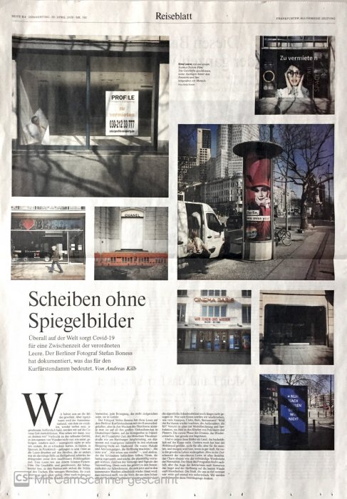 Feature Ku'damm zu Zeiten der Corona-Pandemie "Scheiben ohne Spiegelbilder" im Reiseteil der F.A.Z.
